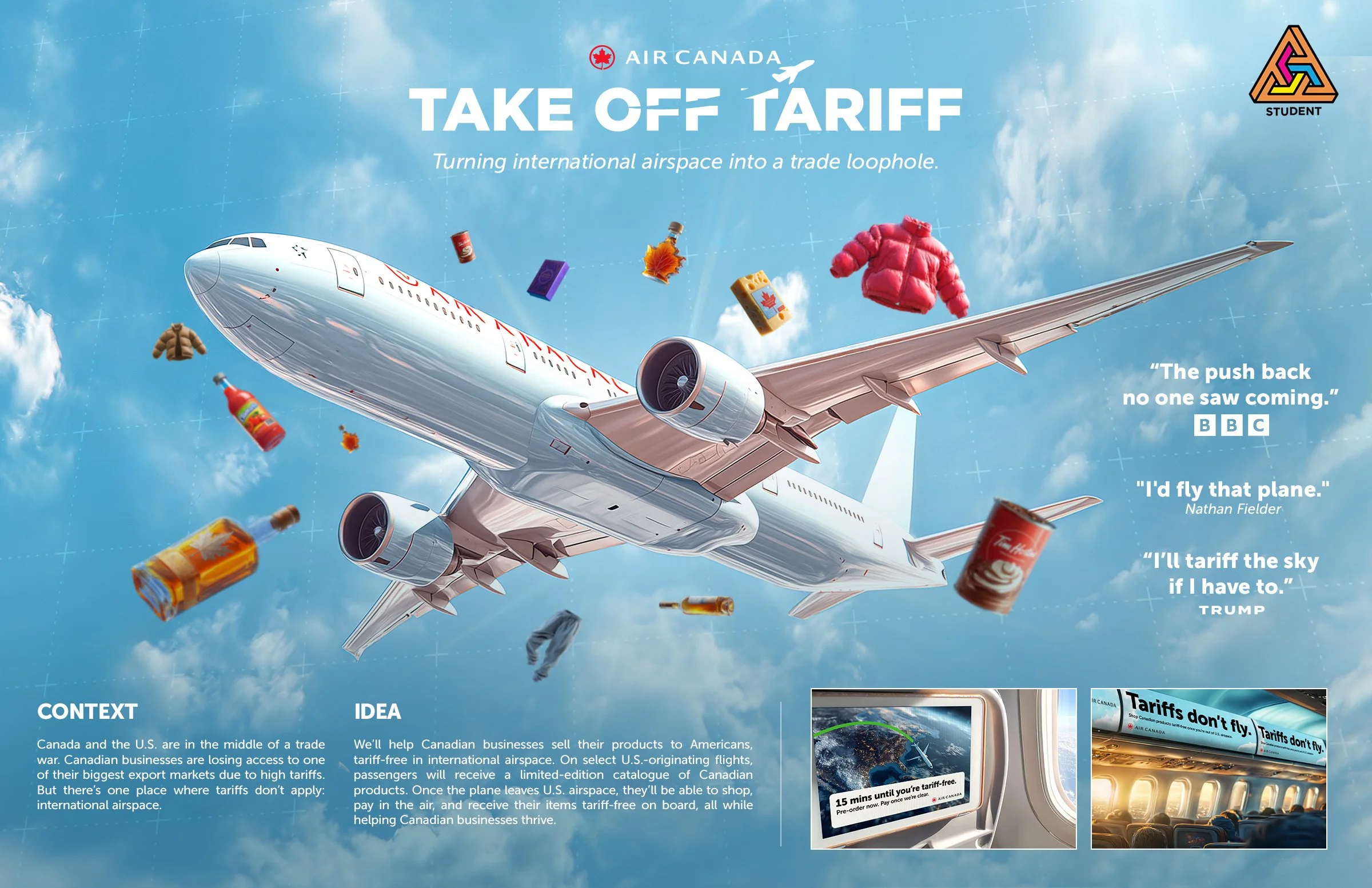 TAKE OFF TARIFF 2025 Applied Arts Award - Concept Development Program| 2025 Communication Arts Award Copywriter: Sadiya Bano Art Director: David Nunez